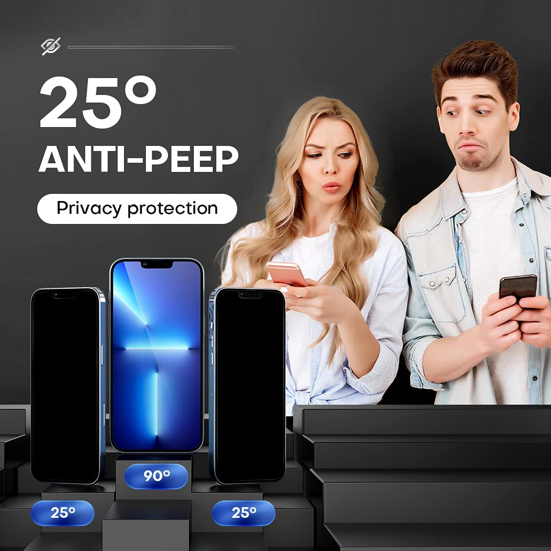 - 【Package Included】: iPhone 13 Pro Max 5G 6.7'' - 2 packs privacy glass screen protector & 2 packs camera lens protector with precise laser cutting technology offers maximum screen coverage. Protect the screen from daily scratches, drop, bumps, while offering anti-fingerprint and privacy protection as well.