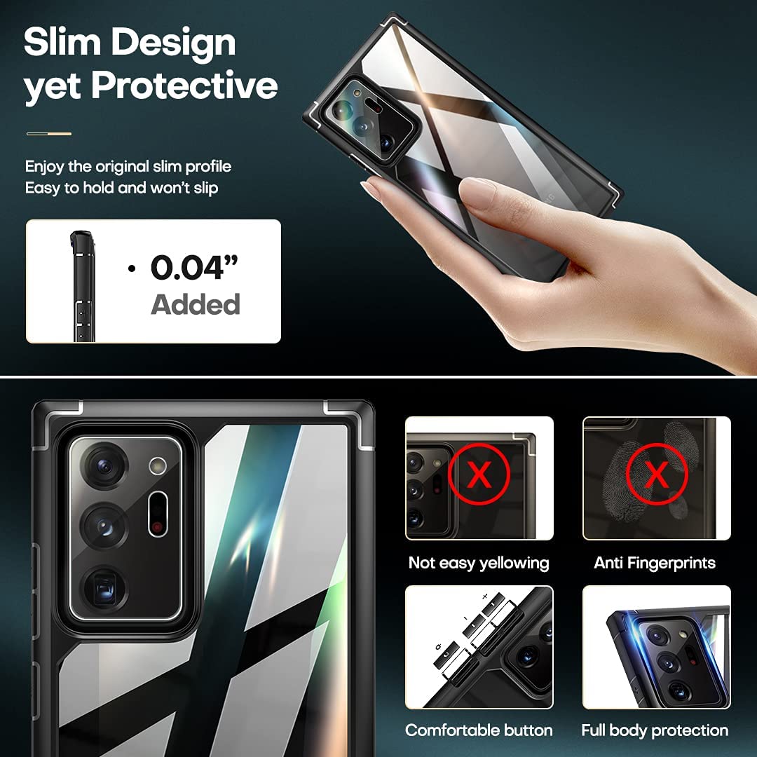 - ★【Slim Design & Comfort Grip】 Minimal bulkiness for max protection designed for Samsung Galaxy Note 20 Ultra to fit in pockets easily. Processed soft frame for enough grip but not sticky.