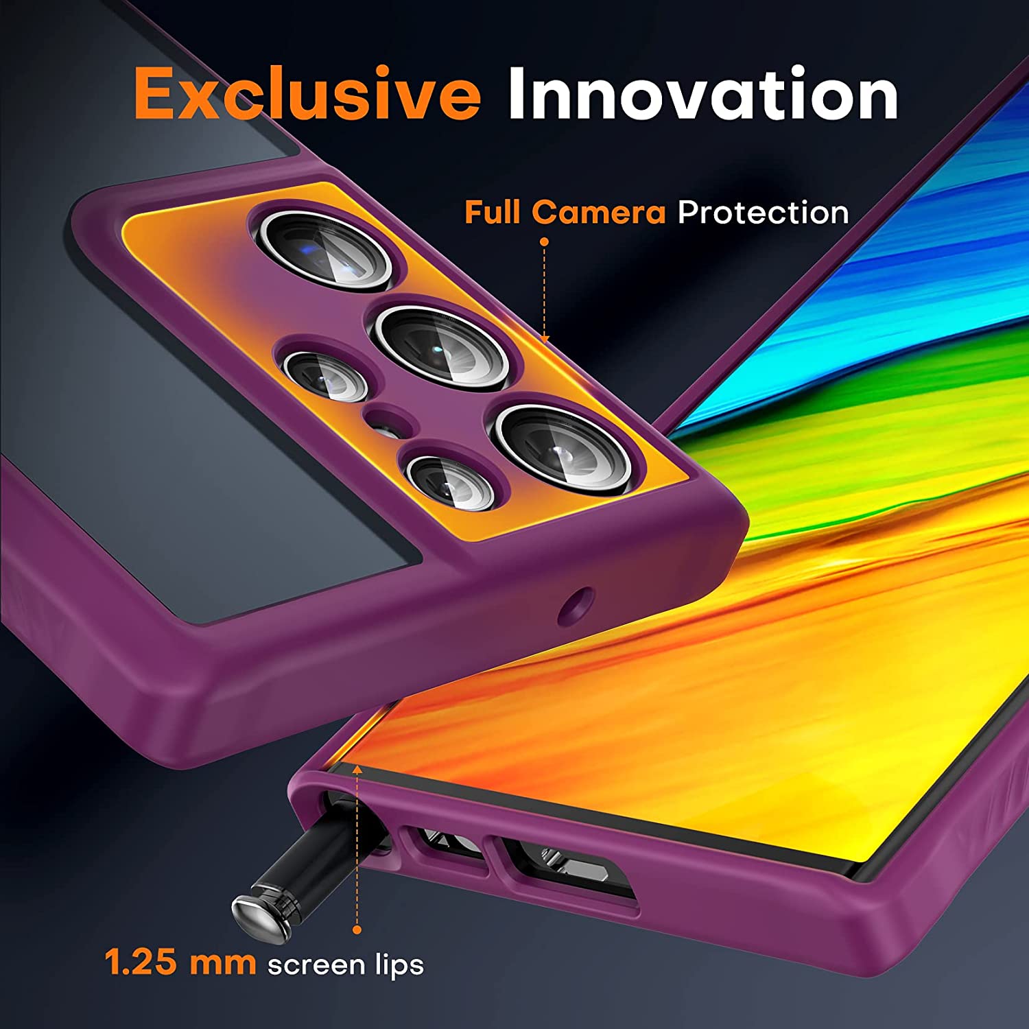 - 👍[Designed to Protect Your Camera & Screen]: The screen & porous camera are the easiest prone to scratches, we innovate All-inclusive rear camera and specially raised the 2.5mm bezels on the screen to protect your S23 Ultra from drops, scratches and bumps.