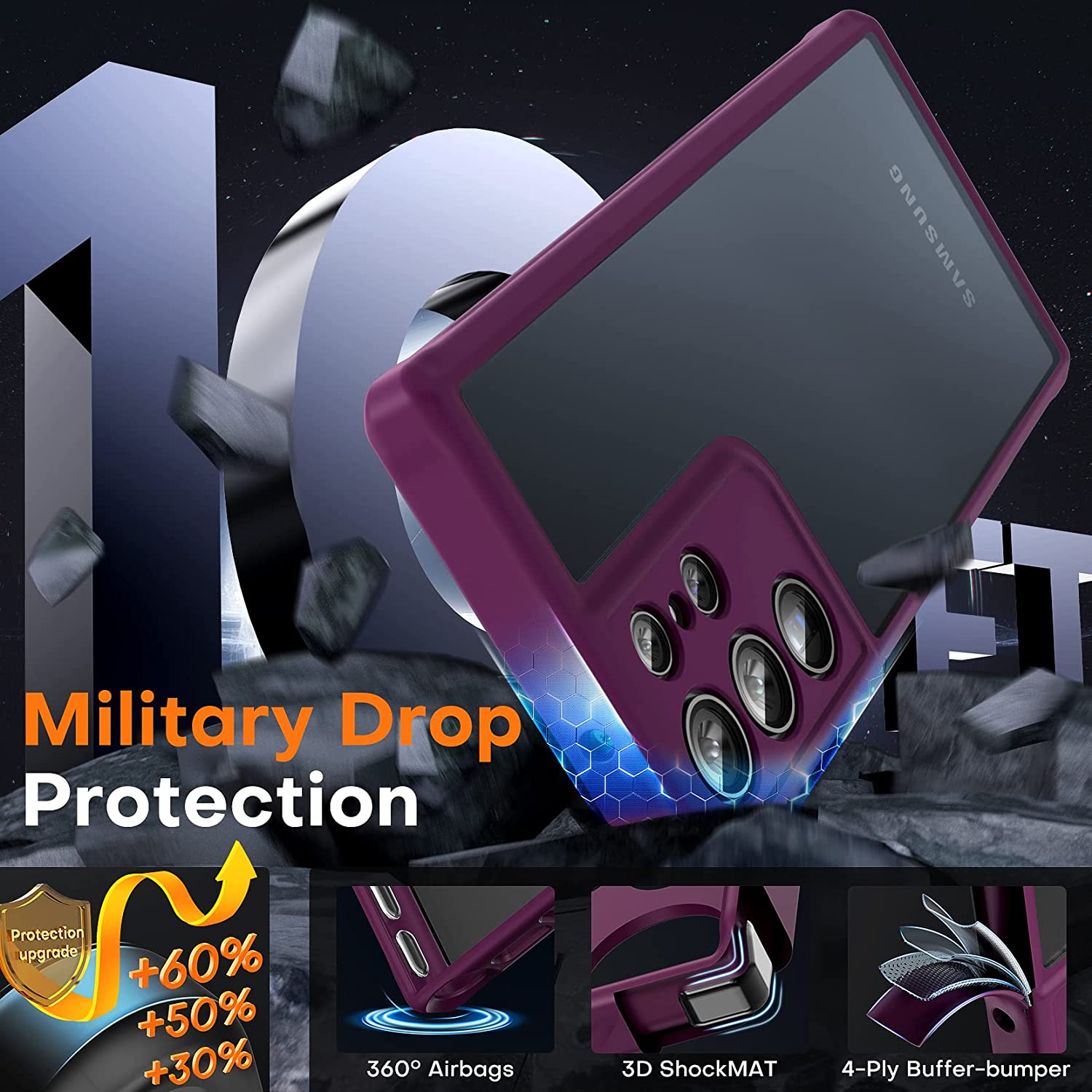 - 👍[Sophisticated Defense]: Our Galaxy S23 Ultra case is equipped with the new Upgraded [DropProof Structure:3-ply Strengthen-Frame + Hard Explosion-proof backplane] and [ShockProof System: Built-in 360° all-around powerful impact dispersion airbags & 3-Gen X-SHOCK anti-collision technology on corners]. No panic facing any drops.