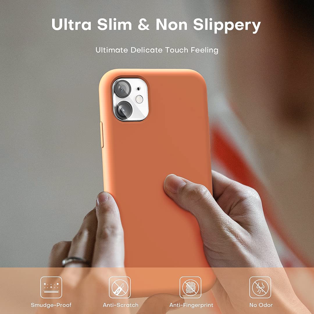 TOCOL [5 in 1] Designed for iPhone 11 Case, with 2 Pack Screen Protector + 2 Pack Camera Lens Protector, Liquid Silicone Slim Shockproof Cover [Anti-Scratch] [Drop Protection], Kumquat