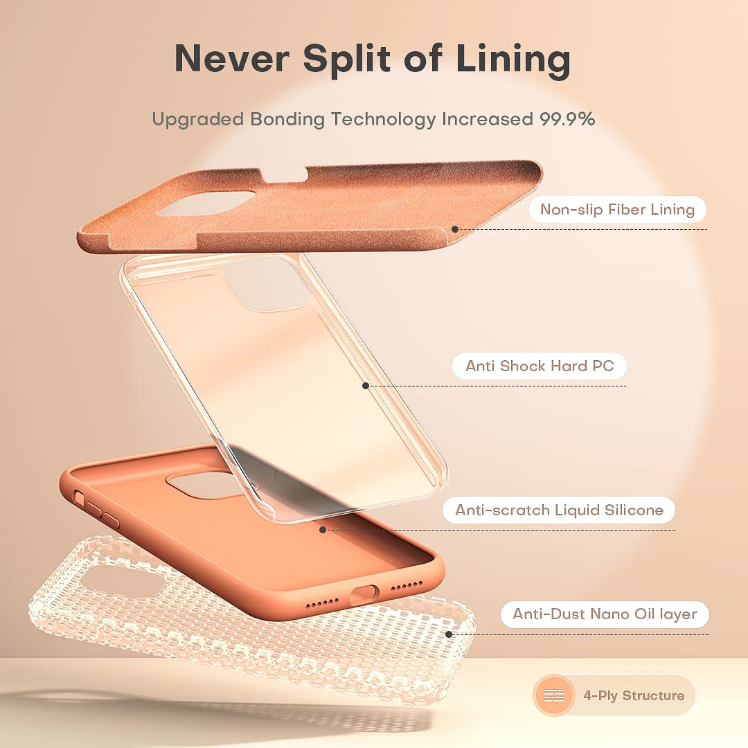 - [Durable Silicone & Excellent Grip]: Designed for iphone 11 case with premium pure Liquid Silicone material improves 100 times more durable than traditional cases. Offering sleek but not slippery grip, and also ensuring a soft handle that never deforms or breaks. Add a layer of anti-adhesive new nano oleophobic on the back. Effectively resist 99.9% of sticky dust and hair problems.