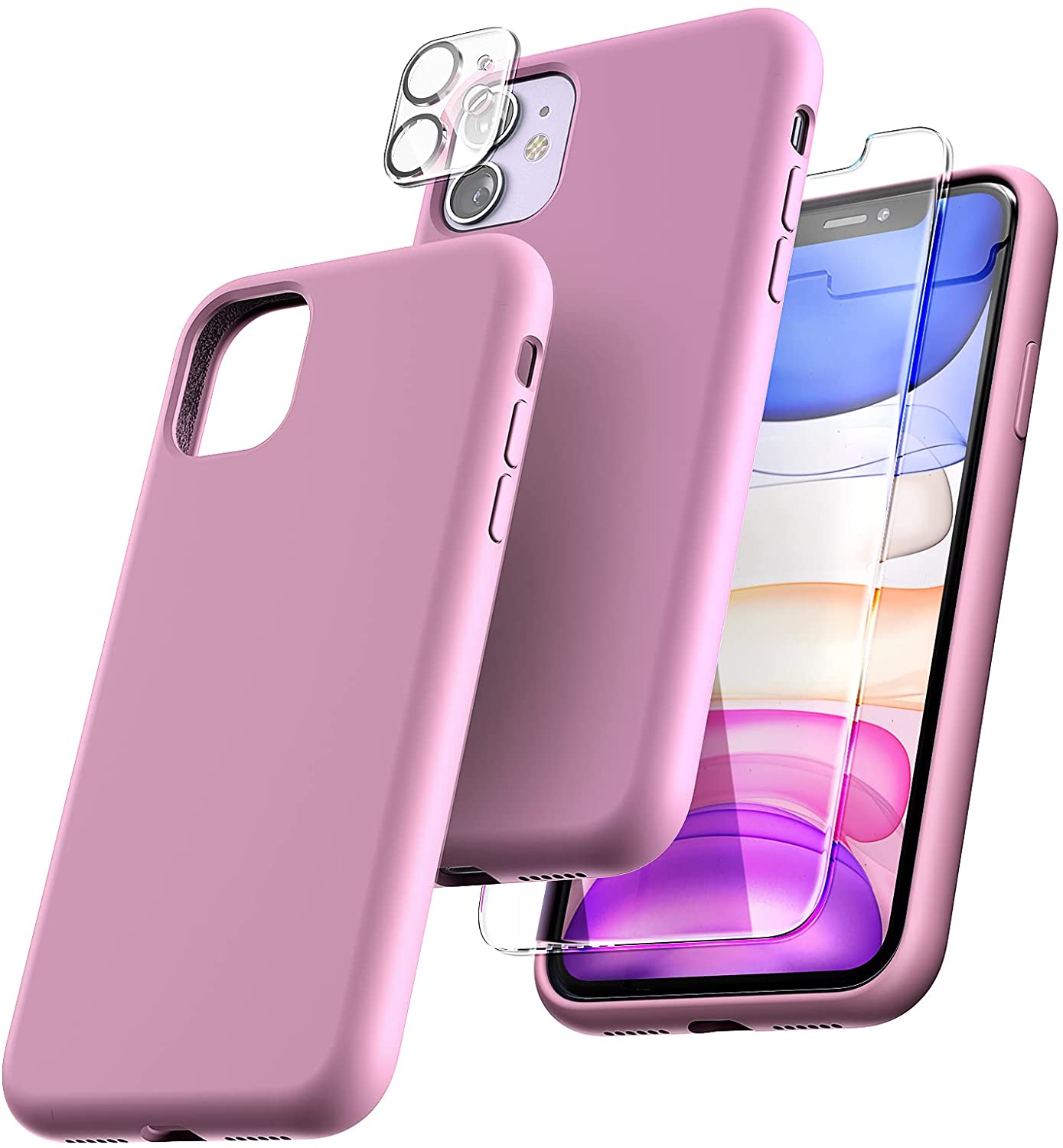 TOCOL [5 in 1] Designed for iPhone 11 Case, with 2 Pack Screen Protector + 2 Pack Camera Lens Protector, Liquid Silicone Slim Shockproof Cover [Anti-Scratch] [Drop Protection], Lilac Purple