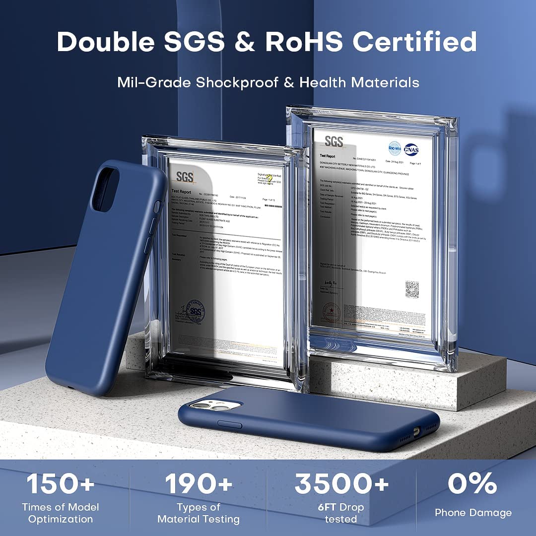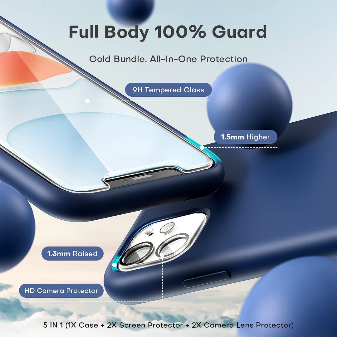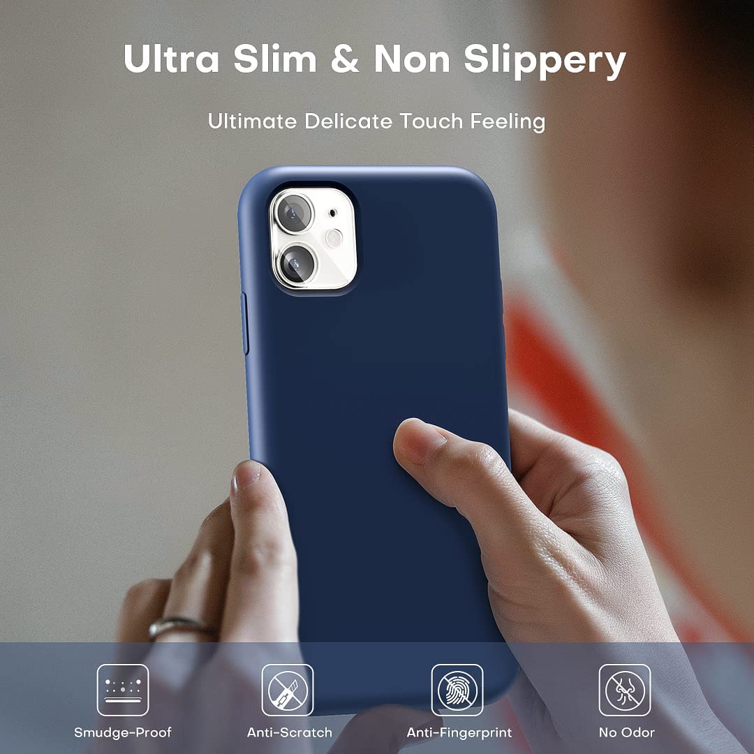 TOCOL [5 in 1 Designed for iPhone 11 Case, with 2 Pack Screen Protector + 2 Pack Camera Lens Protector, Liquid Silicone Slim Shockproof Cover [Anti-Scratch] [Drop Protection], Navy Blue