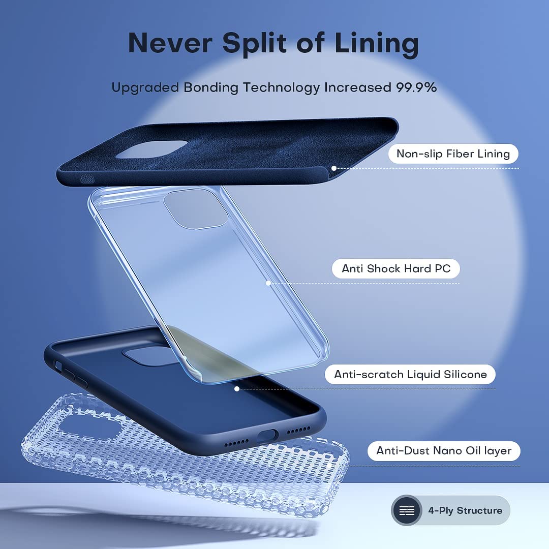 - [Durable Silicone & Excellent Grip]: Designed for iphone 11 case with premium pure Liquid Silicone material improves 100 times more durable than traditional cases. Offering sleek but not slippery grip, and also ensuring a soft handle that never deforms or breaks. Add a layer of anti-adhesive new nano oleophobic on the back. Effectively resist 99.9% of sticky dust and hair problems.