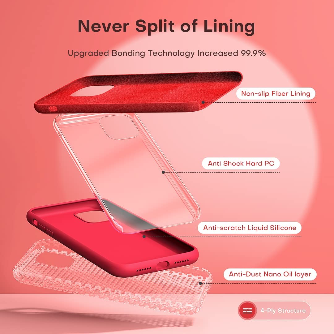 - [Durable Silicone & Excellent Grip]: Designed for iphone 11 case with premium pure Liquid Silicone material improves 100 times more durable than traditional cases. Offering sleek but not slippery grip, and also ensuring a soft handle that never deforms or breaks. Add a layer of anti-adhesive new nano oleophobic on the back. Effectively resist 99.9% of sticky dust and hair problems.