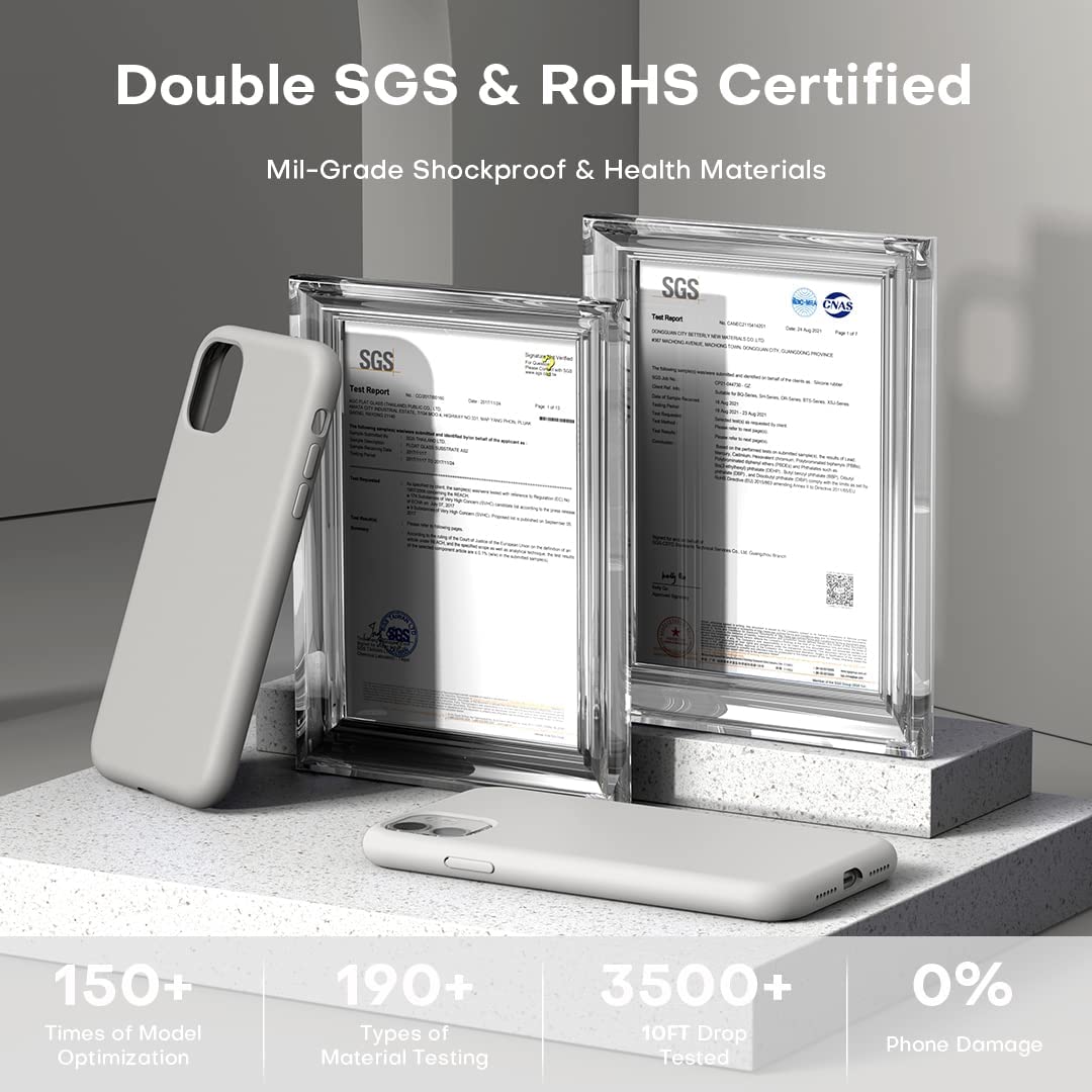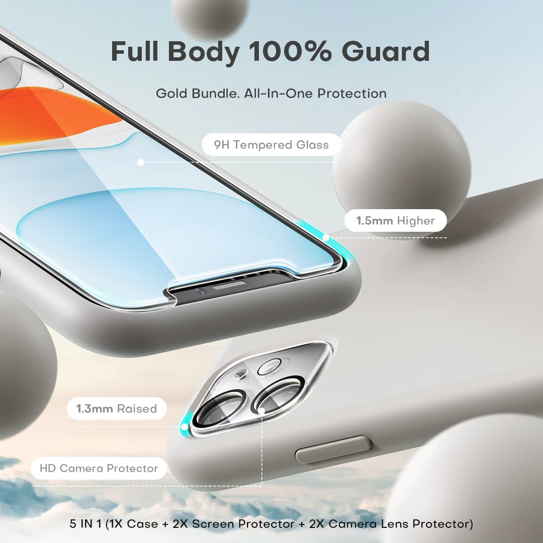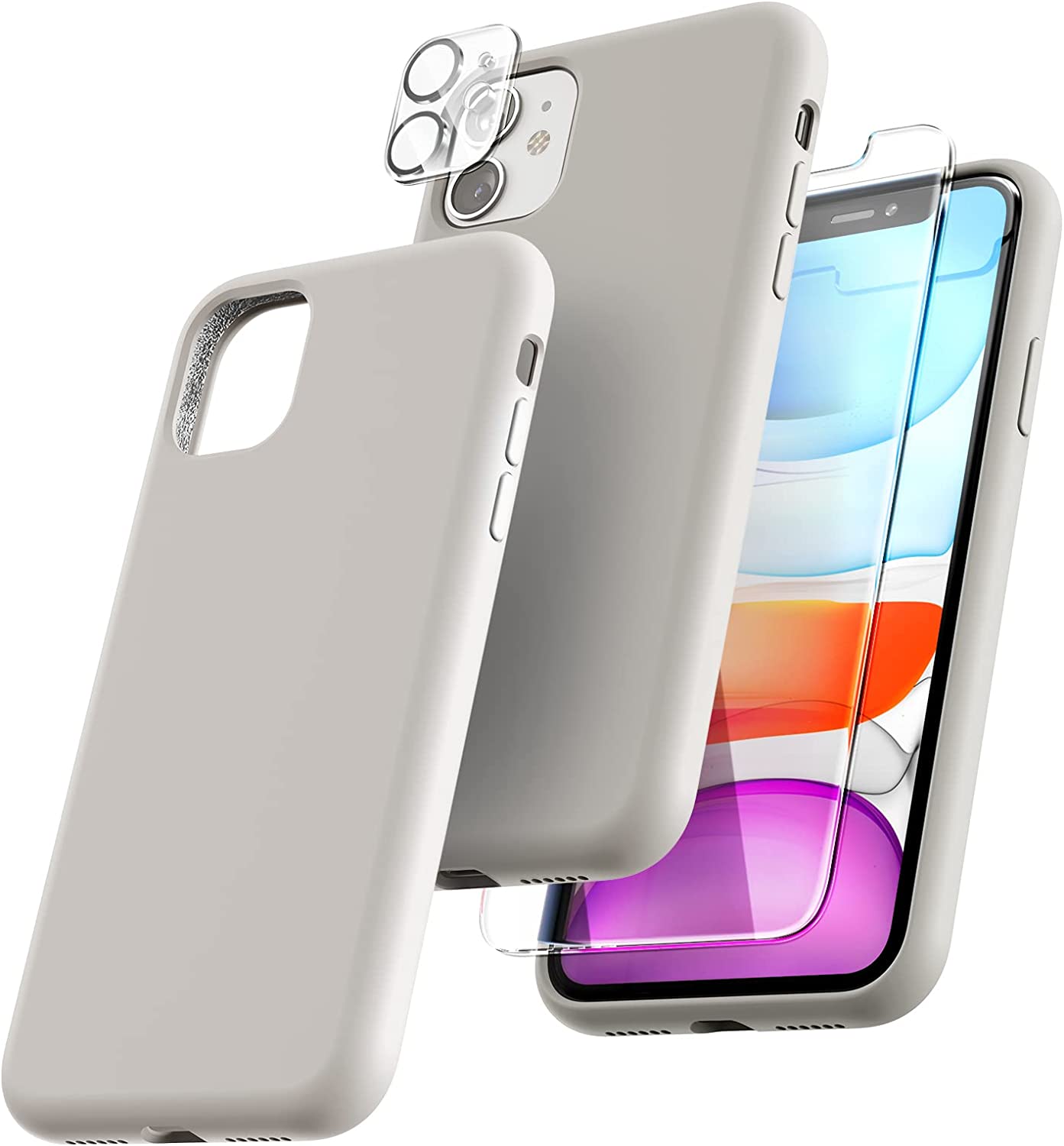 TOCOL [5 in 1 Designed for iPhone 11 Case, with 2 Pack Screen Protector + 2 Pack Camera Lens Protector, Liquid Silicone Slim Shockproof Cover [Anti-Scratch] [Drop Protection], Stone
