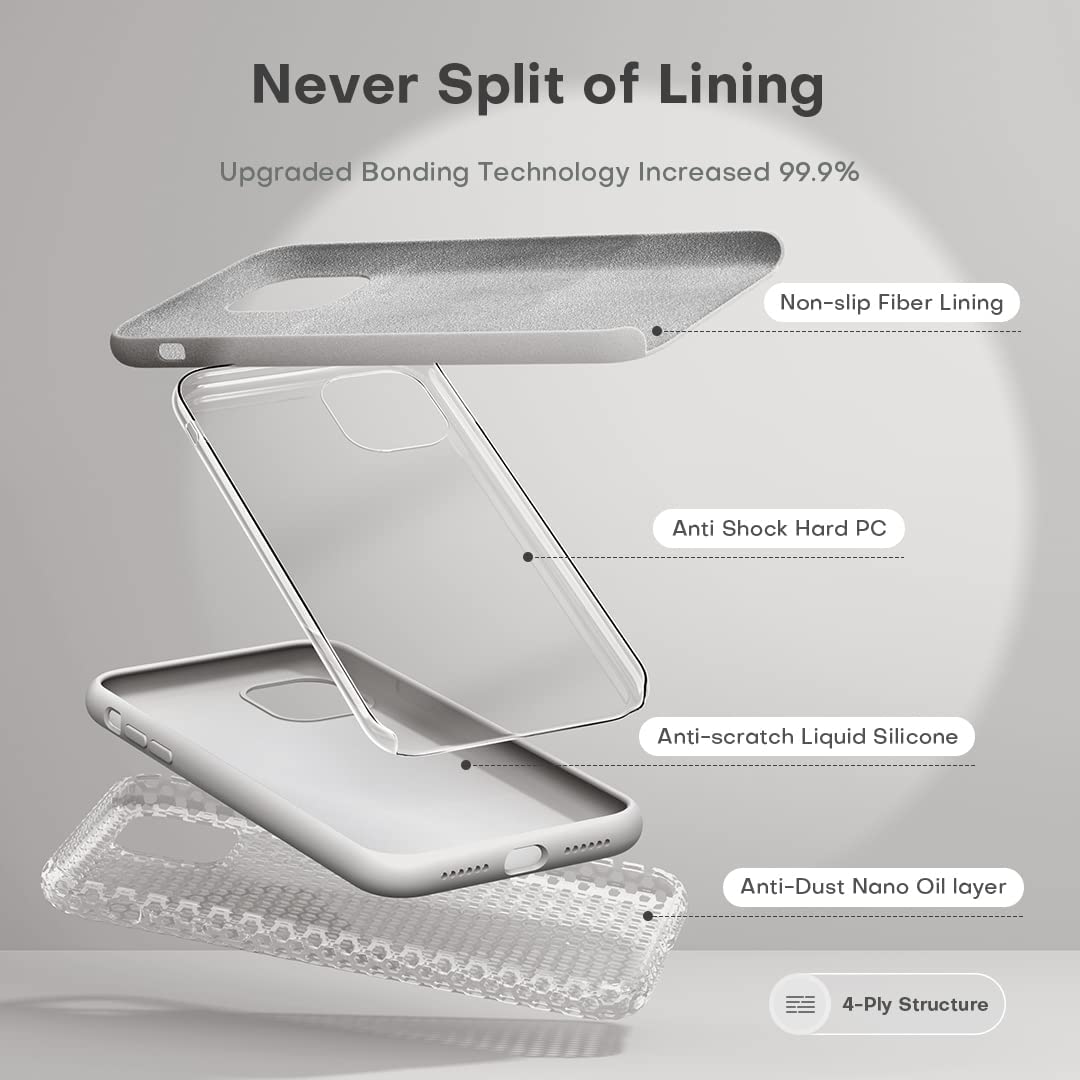 - [Durable Silicone & Excellent Grip]: Designed for iphone 11 case with premium pure Liquid Silicone material improves 100 times more durable than traditional cases. Offering sleek but not slippery grip, and also ensuring a soft handle that never deforms or breaks. Add a layer of anti-adhesive new nano oleophobic on the back. Effectively resist 99.9% of sticky dust and hair problems.
