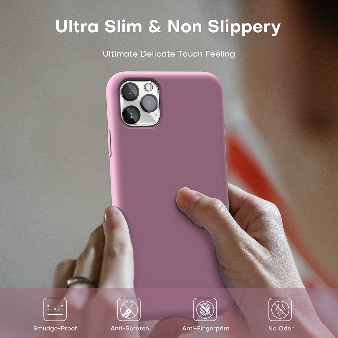 TOCOL [5 in 1] for iPhone 11 Pro Max Cases, with 2 Pack Screen Protector + 2 Pack Camera Lens Protector, Liquid Silicone Slim Shockproof Phone Case [Anti-Scratch] [Drop Protection] 6.5'', Lilac Purple