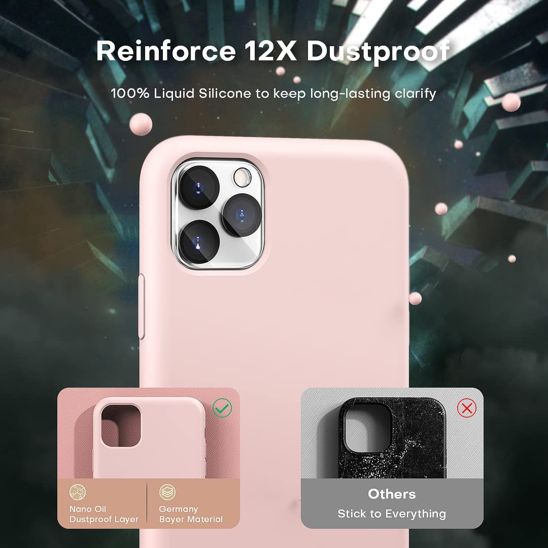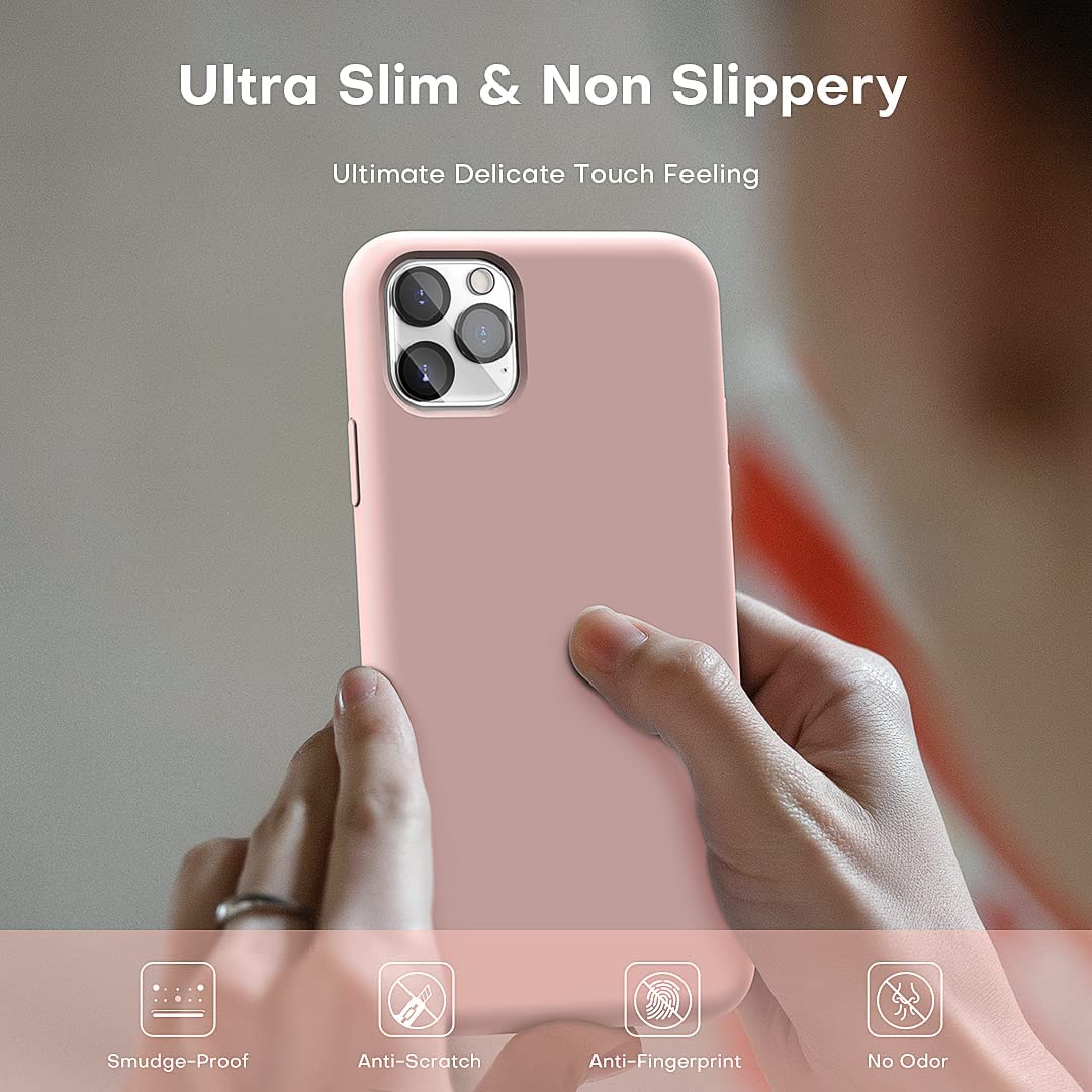TOCOL [5 in 1] for iPhone 11 Pro Max Cases, with 2 Pack Screen Protector + 2 Pack Camera Lens Protector, Liquid Silicone Slim Shockproof Phone Case [Anti-Scratch] [Drop Protection] 6.5'', Pink
