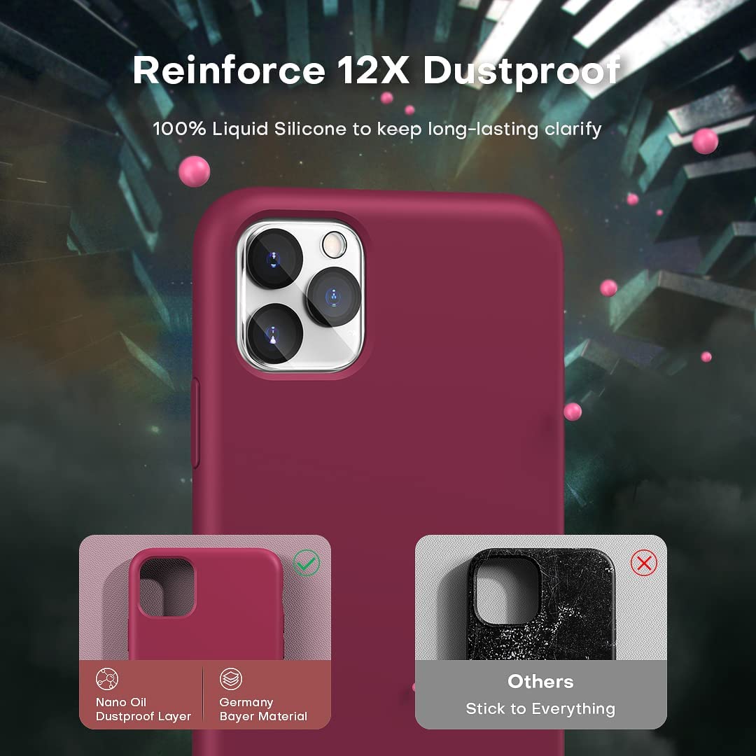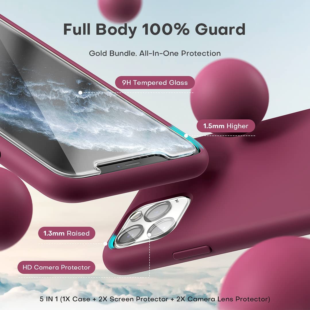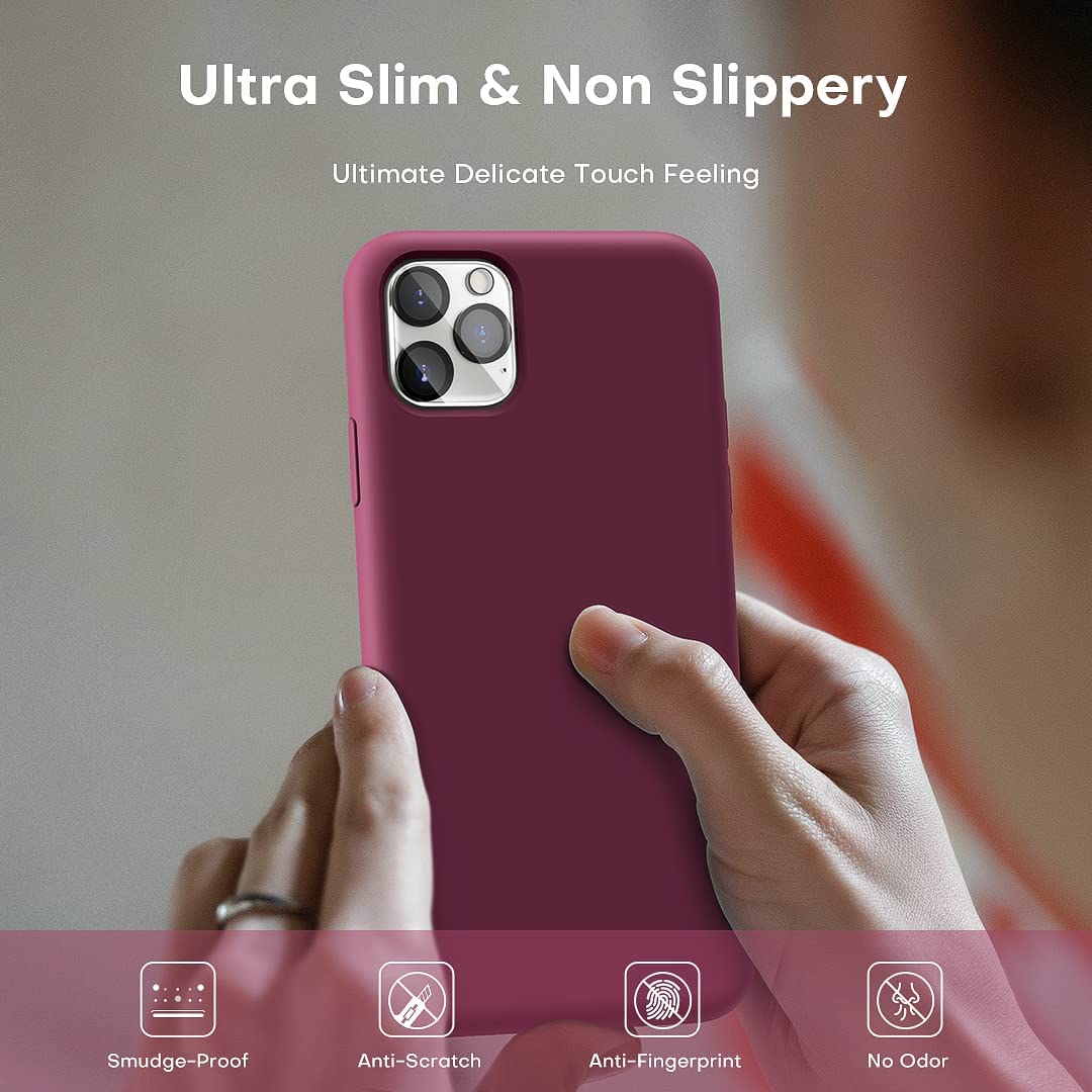 TOCOL [5 in 1] for iPhone 11 Pro Max Cases, with 2 Pack Screen Protector + 2 Pack Camera Lens Protector, Liquid Silicone Slim Shockproof Phone Case [Anti-Scratch] [Drop Protection] 6.5'', Plum