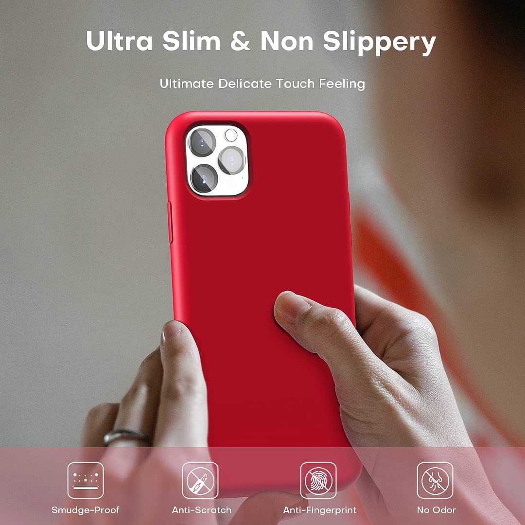 TOCOL [5 in 1] for iPhone 11 Pro Max Cases, with 2 Pack Screen Protector + 2 Pack Camera Lens Protector, Liquid Silicone Slim Shockproof Phone Case [Anti-Scratch] [Drop Protection] 6.5'', Red