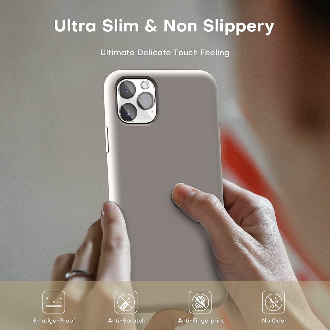 TOCOL [5 in 1] for iPhone 11 Pro Max Cases, with 2 Pack Screen Protector + 2 Pack Camera Lens Protector, Liquid Silicone Slim Shockproof Phone Case [Anti-Scratch] [Drop Protection] 6.5'', Stone