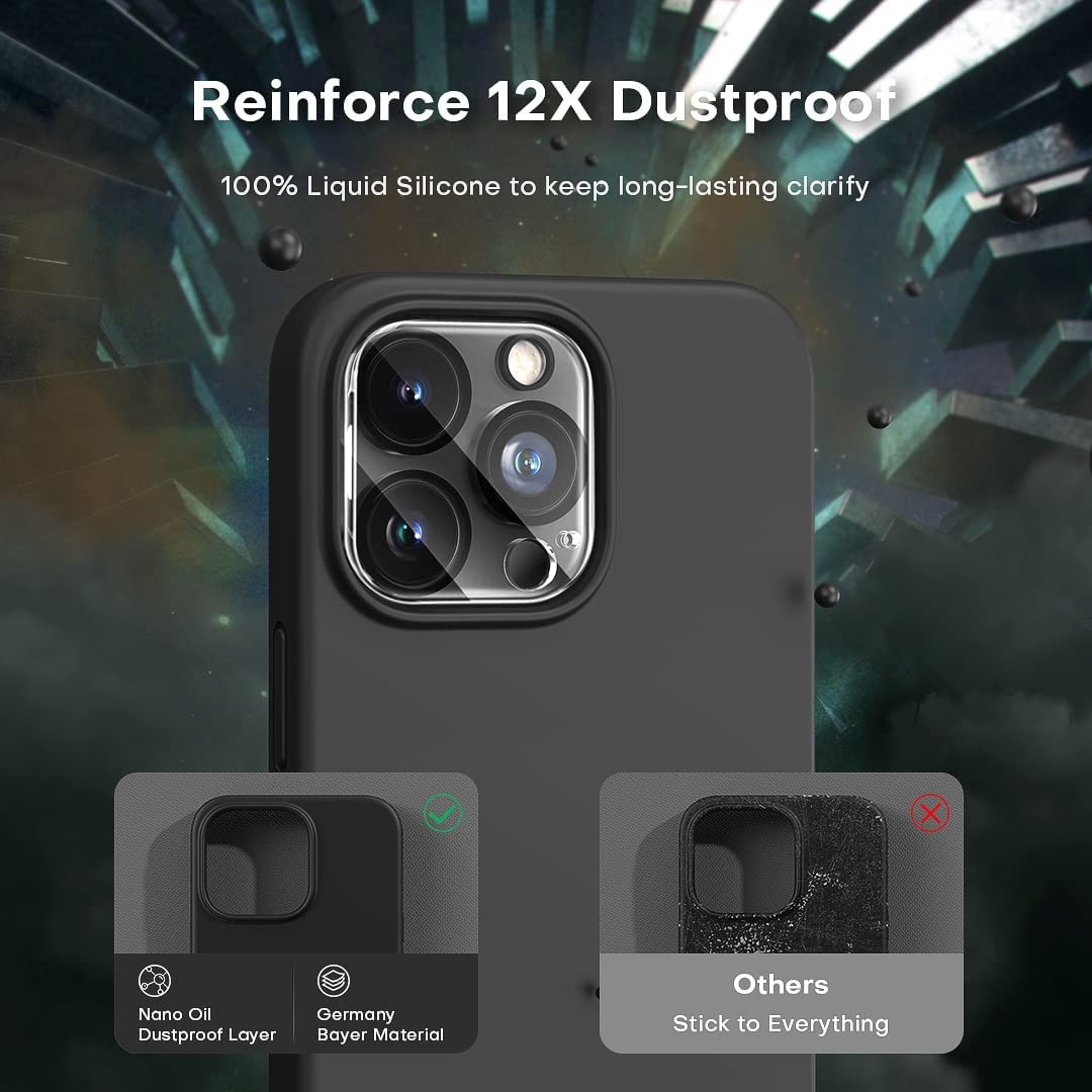 - [Microfiber Lining & Wireless Charging]: Soft silicone case wraps seamlessly around your iphone 13 pro max case. Microfiber lining protects the back of your phone from daily scratches and keeps dust out. Super thin with minimal bulkiness for you to protect the phone without any burden. Lightly design realizes the quick wireless charging in every moment.