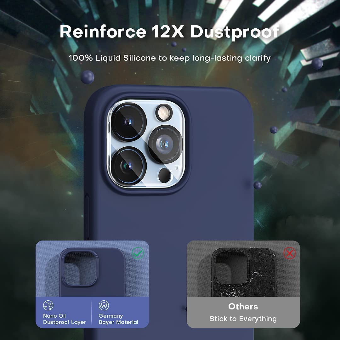 - [Durable Silicone & Excellent Grip]: Only designed for iphone 13 pro max case 6.7 inch 2021(⚠️NOT for iphone 13 pro 6.1 inch / iphone 13 6.1 inch / iphone 13 mini 5.4 inch),with premium pure Liquid Silicone material improves 100 times more durable than traditional cases. Offering sleek but not slippery grip, and also ensuring a soft handle that never deforms or breaks. Add a layer of anti-adhesive new nano oleophobic on the back. Effectively resist 99.9% of sticky dust and hair problems.