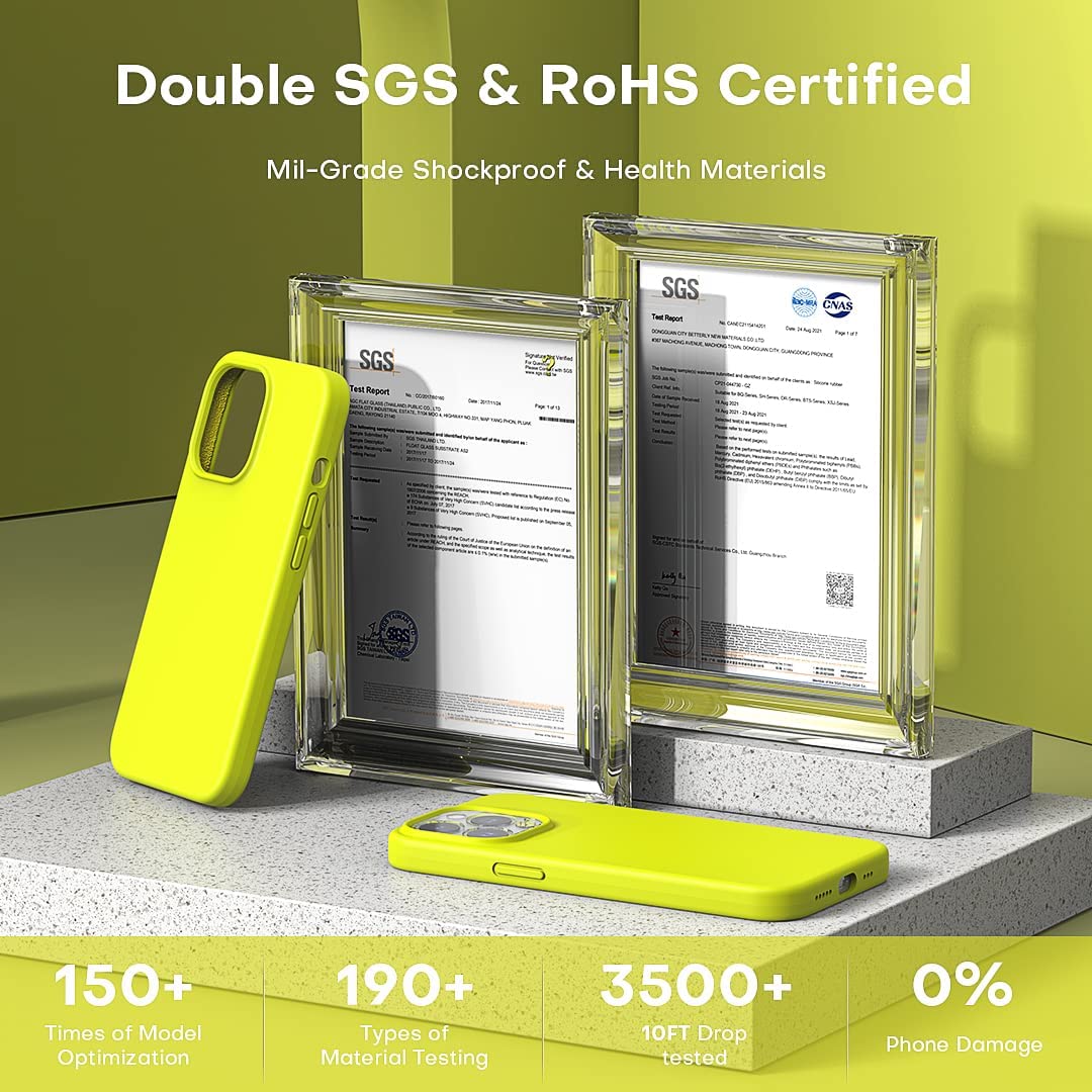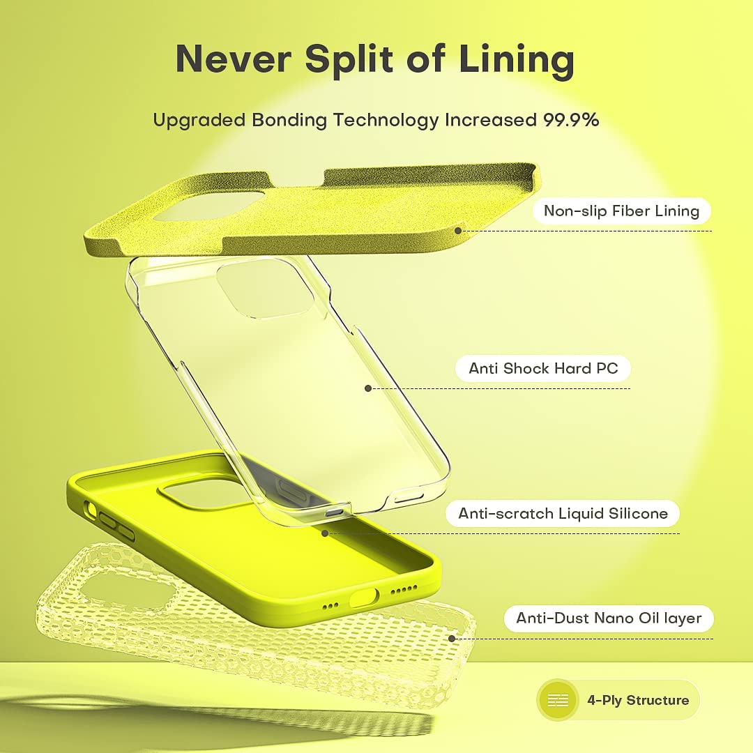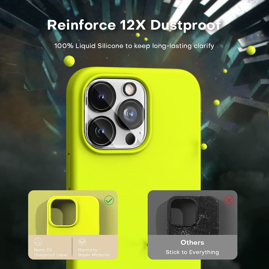 TOCOL [5 in 1] for iPhone 13 Pro Max Case, with 2 Pack Screen Protector + 2 Pack Camera Lens Protector, Slim Liquid Silicone Phone Case 6.7 Inch, [Anti-Scratch] [Drop Protection],Fluorescent Yellow