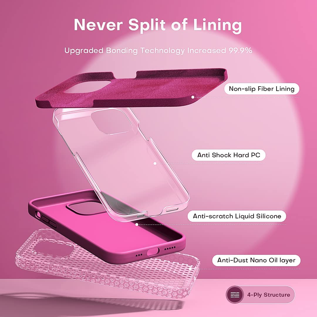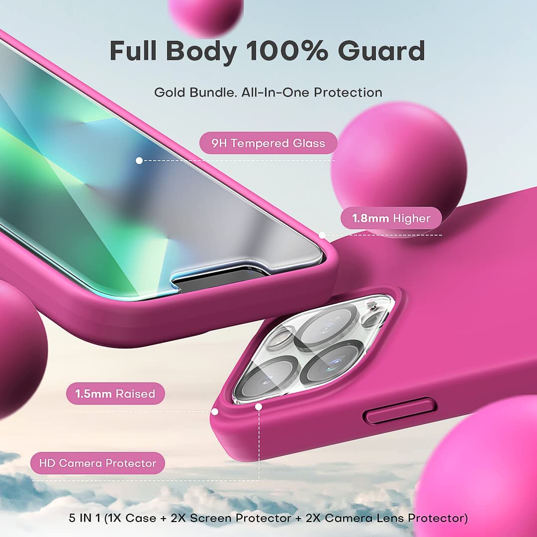 TOCOL [5 in 1] for iPhone 13 Pro Max Case, with 2 Pack Screen Protector + 2 Pack Camera Lens Protector, Slim Liquid Silicone Phone Case 6.7 Inch, [Anti-Scratch] [Drop Protection],Hot Pink