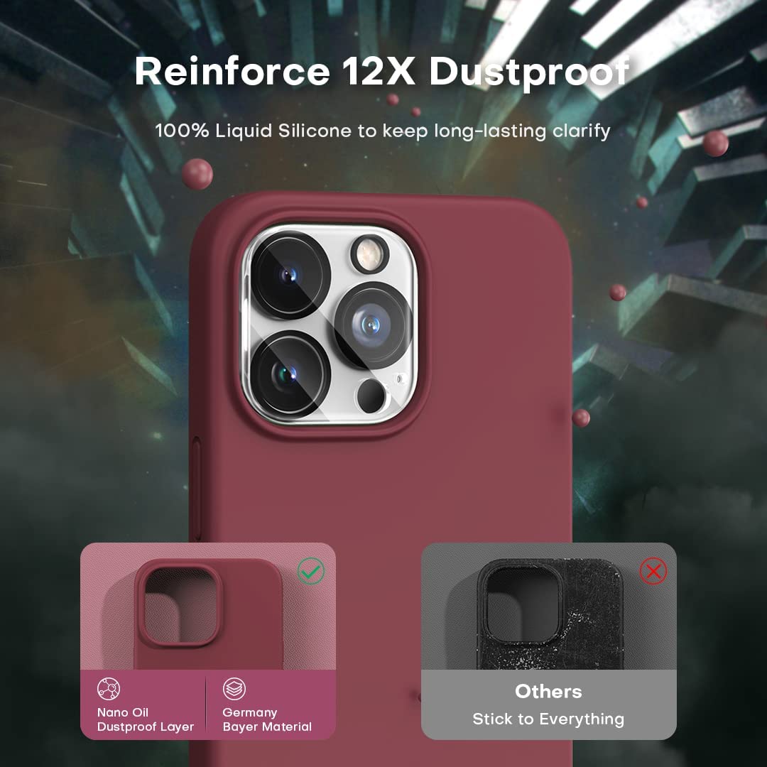 - [Durable Silicone & Excellent Grip]: Only designed for iphone 13 pro max case 6.7 inch 2021(⚠️NOT for iphone 13 pro 6.1 inch / iphone 13 6.1 inch / iphone 13 mini 5.4 inch),with premium pure Liquid Silicone material improves 100 times more durable than traditional cases. Offering sleek but not slippery grip, and also ensuring a soft handle that never deforms or breaks. Add a layer of anti-adhesive new nano oleophobic on the back. Effectively resist 99.9% of sticky dust and hair problems.