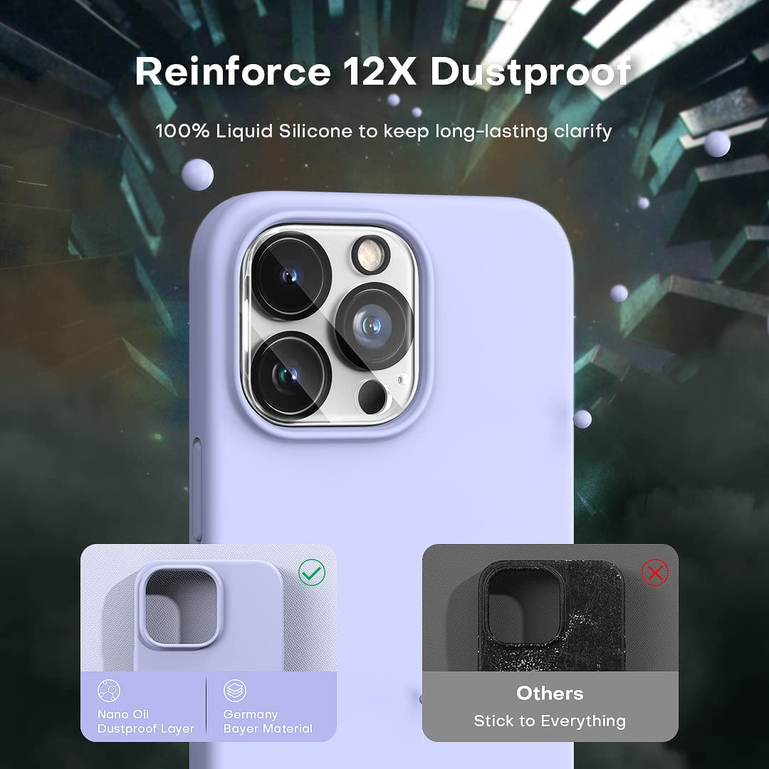 - [Durable Silicone & Excellent Grip]: Only designed for iphone 13 pro max case 6.7 inch 2021(⚠️NOT for iphone 13 pro 6.1 inch / iphone 13 6.1 inch / iphone 13 mini 5.4 inch),with premium pure Liquid Silicone material improves 100 times more durable than traditional cases. Offering sleek but not slippery grip, and also ensuring a soft handle that never deforms or breaks. Add a layer of anti-adhesive new nano oleophobic on the back. Effectively resist 99.9% of sticky dust and hair problems.