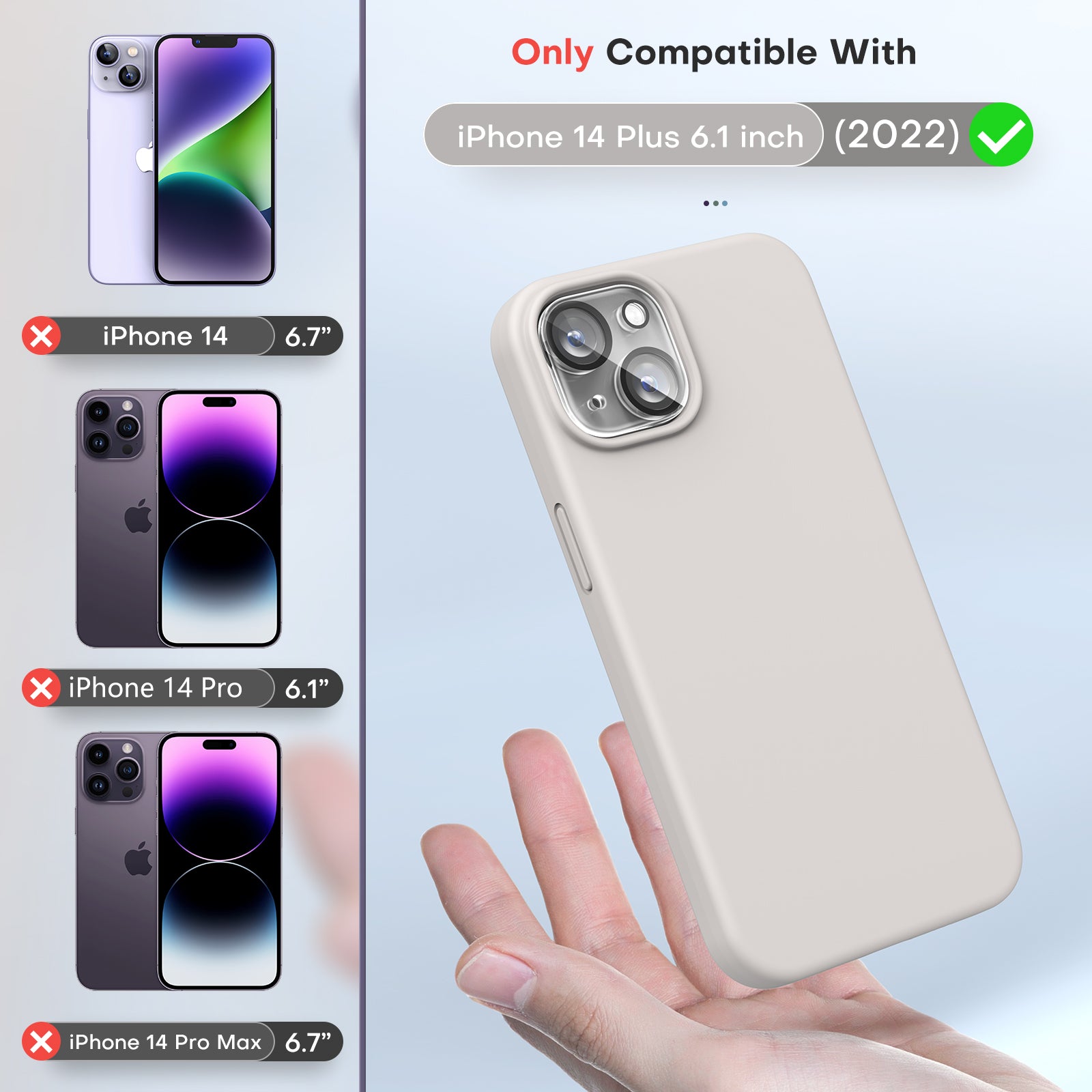 TOCOL [5 in 1] for iPhone 14 Plus Case, 2X Screen Protector + 2X Camera Lens Protector, Slim Liquid Silicone Phone Case iPhone 14 Plus 6.7 Inch, [Anti-Scratch] [Drop Protection], Stone