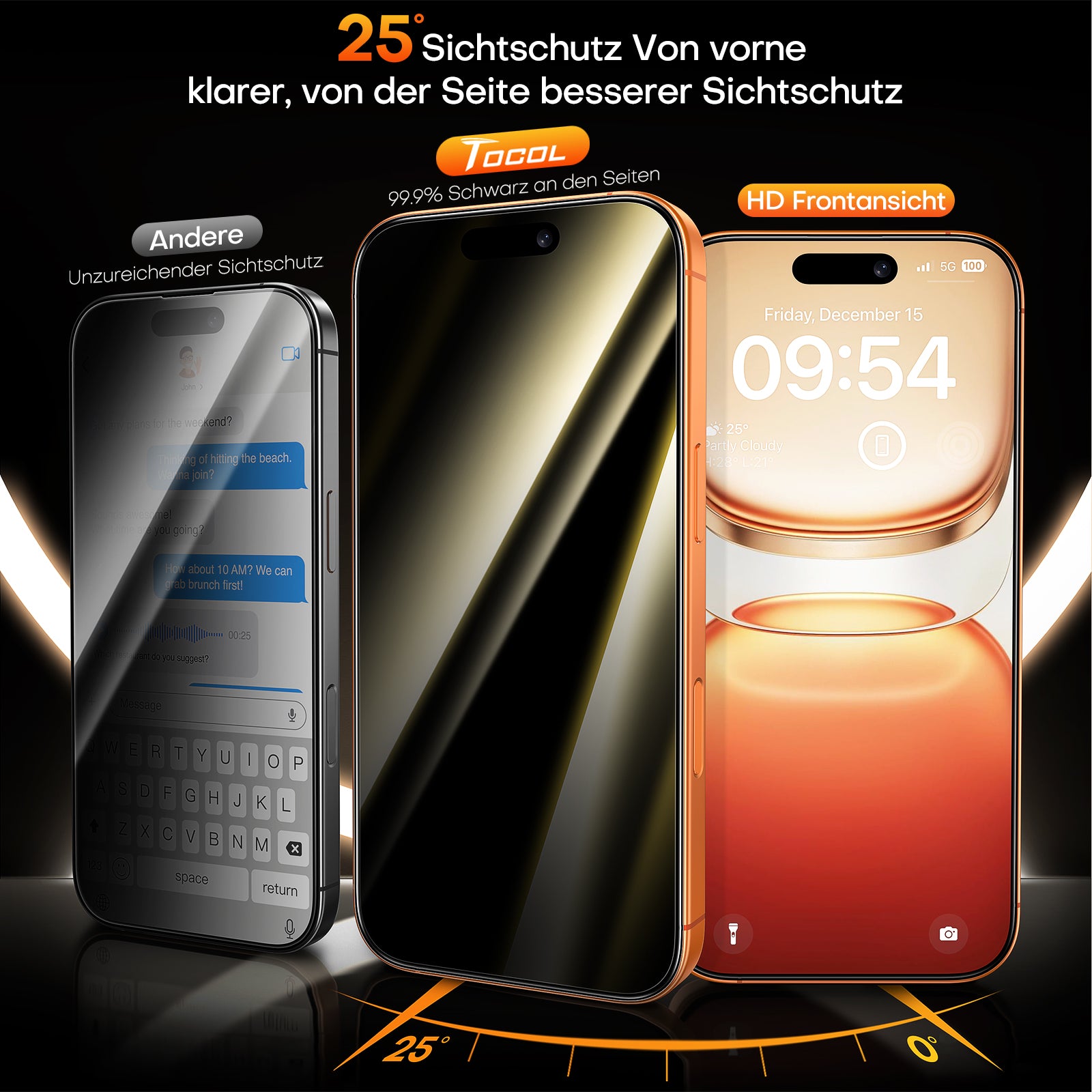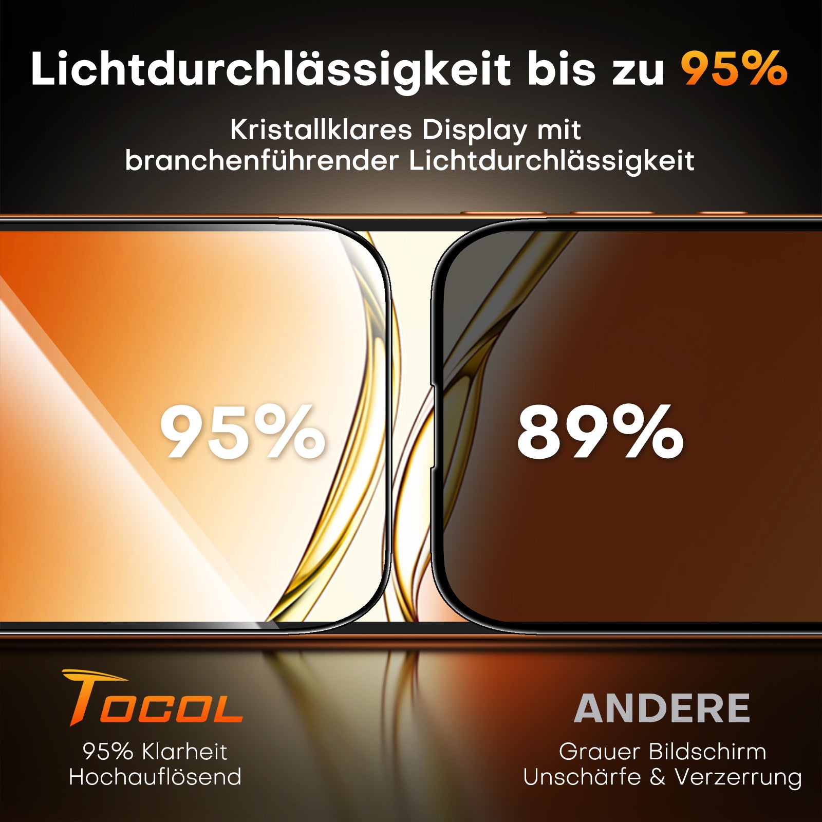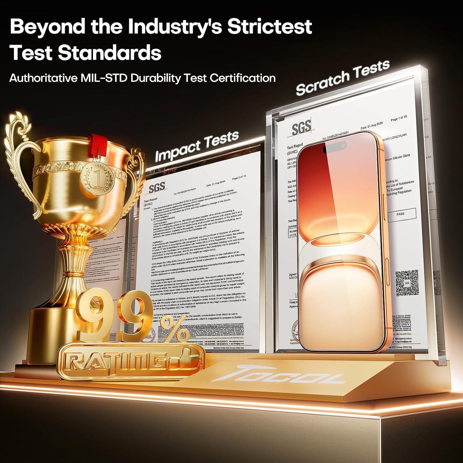 TOCOL for iPhone 17 Pro/iPhone 16 Pro Screen Protector 6.3-Inch, Instant Installation, Tempered Glass HD Clear, Full Coverage Protection, Military Grade Shatterproof, Case Friendly, 2 Pack